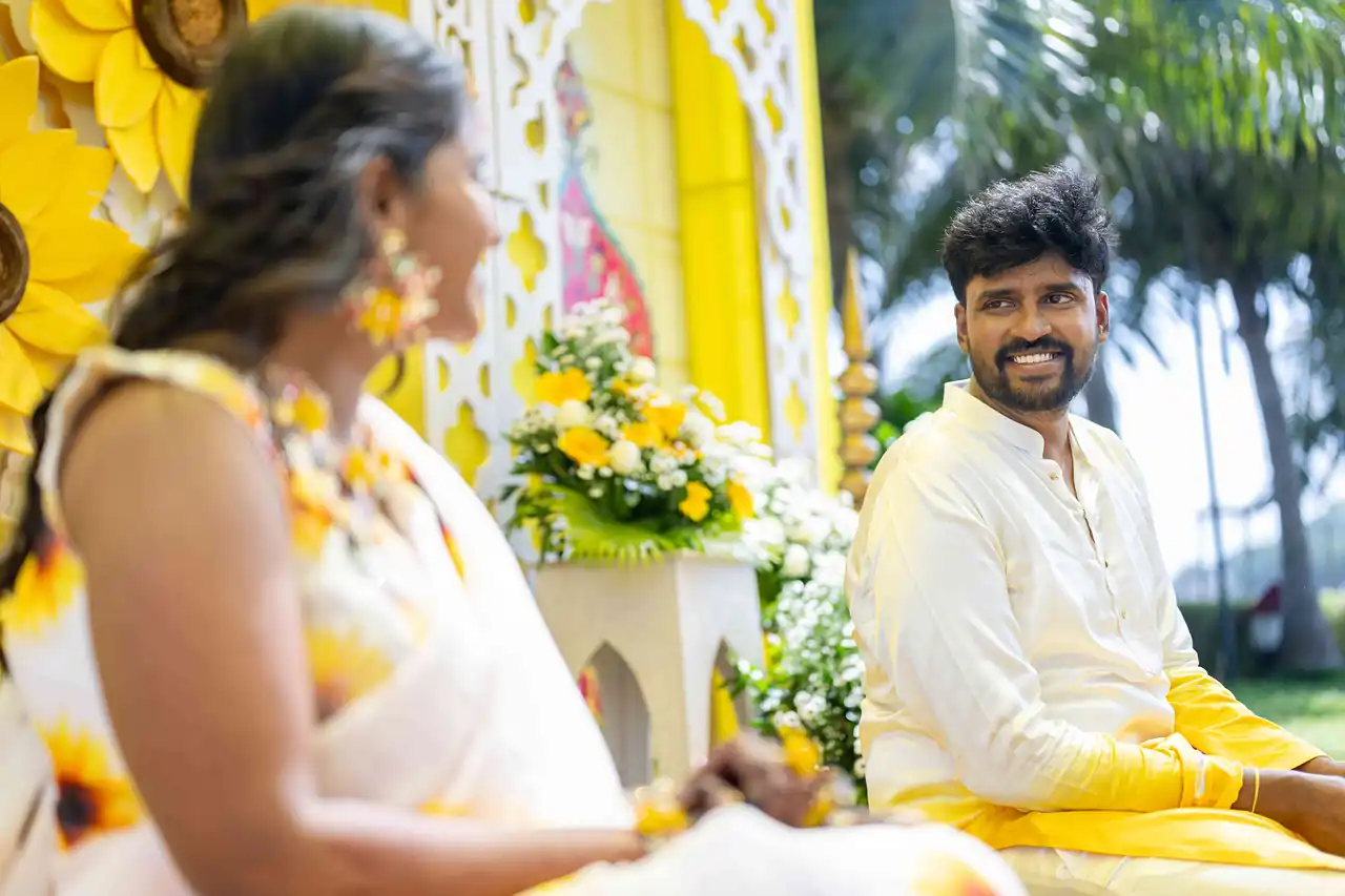 The vibrant wedding of Manideep and Keerthi took place at the exquisite Radisson Blue Resort in Visakhapatnam, where the air was alive with joy and anticipation. The lush surroundings and elegant decor set the perfect backdrop for their love story. As friends and family gathered, the atmosphere buzzed with excitement, ready to witness the union of two souls deeply in love, amidst stunning coastal views that perfectly complemented the day’s festivities.